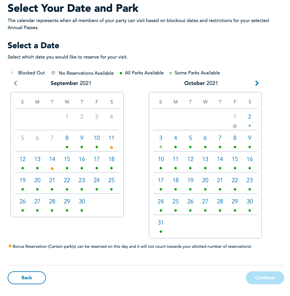 You select how you want to book your park passes - from Tickets, Annual Passes and then as APs you can select hotel guest or from your allocation as an AP and the calendar will tell you ahead of time whether there is availability or not ... very cool!